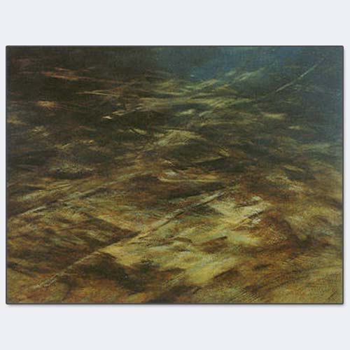 der serie: ALLES FLIESST 1993 / öl auf holz 125 x 160cm im besitz des künstlers aus meiner sicht ist diese serie ein höhepunkt in der thematik der wasserarbeiten. grossformatig, dynamisch und im wahrsten sinn des wortes auf den grund gehend. |