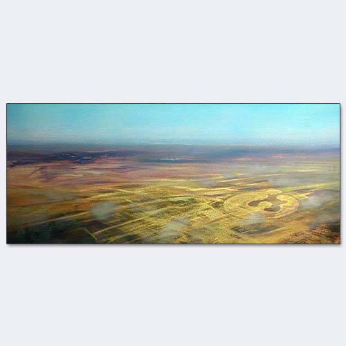 LAND 2002 / öl auf hartfaser 160 x 70 cm als artpreis organon an einen wissenschafter verliehen ein produktlogo in das land eingesetzt - bezüge zu den scharrbildern von nazca/peru werden hergestellt. da es sich dabei um ein fertility - pharmaprodukt handelt, wird der titel zum wortspiel. |