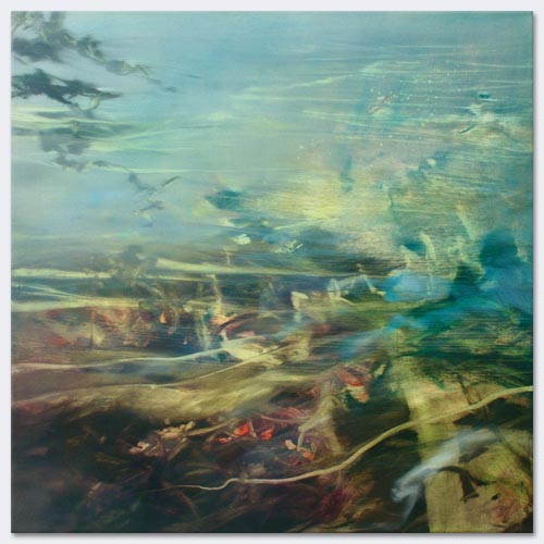 DER STRÖMUNG VERWEILEN 01 2002 / öl auf leinwand 120 x 120 cm privatbesitz strömung als vorwand zur gestisch-diffus gehaltenen malerei. neue qualitäten durch verwendung glatt grundierter leinwand. in der bildwirkung. |