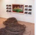 ![]() Adam hatte also sieben Töchter. Möglicherweise hatte er den Verlust des Paradieses auf diese Art zu kompensieren versucht. Allem Anschein nach war zu diesem Zeitpunkt die Fortpflanzung noch nicht richtig konfiguriert gewesen. Wie sollten wir uns sonst die offensichtliche Gleichaltrigkeit der Töchter erklären. Eineiige Mehrlinge - ohne Zweifel. Adam, der Vater, in gespenstisch ungesund wirkendes Licht getaucht, lässt es auf seinem heiligenscheinähnlich umrahmten Haupt geschehen. Sieben weibliche, noch jungfräuliche Wesen vergnügen sich, unbedarft, was die Zukunft bringen könnte. Doch wo war Eva. Hatte sie, in Enstprechung dieses ausgelebten Ödipuskomplexes, sich mittlerweile mit männlichen Nachkommen umgeben? Rudolf Hausner blickt nach innen - blickt in sich hinein, hat das Abgelebte ebenso wie das Heranwachsende in seiner Arbeit zum Thema stilisiert. Er nimmt Adam's Abbild unermüdlich und bedeutungsschwanger in sein Oeuvre und versucht gleichzeitig, die Psychoanalyse, basierend auf Sigmund Freud, als Entwicklungs- und Interpretationsmodus zu verarbeiten. Anthropozentrisch, religiös, würde ich meinen. Ich denke, Rudolf Hausner war ein gläubiger Mensch. Versorgt mit dem Schöpfer und der zugehörigen Schöpfungsgeschichte findet die Auseinandersetzung mit dem Dasein statt. Meine ersten malerischen Schritte akademischen Ausmaßes absolvierte ich unter den Augen dieses Malers Rudolf Hausner. Hatte vielleicht zuwenig Freude an seiner Freud'schen Orientierung, bin dann dem anthropofugalen Denker und Schriftsteller Ulrich Horstmann begegnet und habe so den Dingen ihren Lauf zu lassen gelernt. Melancholisch, depressiv, sagt man mir deshalb gerne nach. Melancholisch lasse ich gelten, hat es doch mit einer versuchten Klarsicht der Dinge fernab jedweder Egozentrik zu tun. Adam fehlt in meiner Schöpfungsgeschichte stattdessen machen mich die emotional immer schwieriger zu handhabenden wissenschaftlichen Ergebnisse und die daraus resultierenden Verhaltensweisen des zu Ende gehenden Jahrtausends neugierig und denkwillig. Die sperrigen Nester - Wiege allen Lebens - sind verlassen (Nest:Vogel:fliegen - welch erhebender Gedankengang um unseren urzeitlichen Wunsch nach Flugfähigkeit). Kein Adam mehr in meiner Geschichte. Auch keine Eva, trotz aller Hochachtung und Befürwortung der längst fälligen Gleichstellung der Geschlechter. Die Nachkommenschaft hat sich absentiert, von den Altvorderen gelöst - wird anscheinend nicht mehr an den Ort des Geschehens (oder doch Nichtgeschehens) zurückkehren. Um in harmonisches : kontroverses Gleichgewicht mit Hausner's Arbeit treten zu können, haben nun invers Eva's Söhne ihren großen Auftritt. Die kindliche Leichtigkeit ist verloren, noch ahnungslos werden Adam's Töchter von ihren - geschlechtlich undefinierbaren - Widerparts umringt. Nicht mehr (wie bei Hausner auf die Druckvorlage) gemalt, stattdessen am Bildschirm über Grafikprogramme per Maus digital gezeichnet und (in Einklang mit Hausner) gedruckt, blicken uns Wesen an, denen versteckt menschliche Aspekte aus den Augen leuchten. Nicht mehr eineiige Mehrlinge (siehe oben), stattdessen aus Modulen:Klebeetiketten generierte Wesen zeigen ihr gleichartiges Gesicht. Invitro, Hormonbehandlung oder Klone sind keine Fremdworte mehr. Unsere Artgenossen beginnen, andere Gestalt anzunehmen - und was ist naheliegender als die Annahme, dass damit untrennbar anderes Denk- und Handlungsvermögen verbunden ist. Ob dabei unser hochverehrter Adam noch seine Würde aus der Menschheit Gnaden bewahren kann, wage ich zu bezweifeln. Eines steht fest: Beim Rausschmiss aus dem Paradies hatte er absolut noch keine Ahnung vom Y2k-Problem. -------- eva's söhne 1999 12 digitalprints auf etiketten auf karton, format 16/22 5 "nester" aus naturmaterialien • eingebunden ist die farblithografie adam's töchter von rudolf hausner |